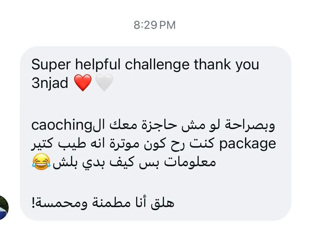 لأنّي كنت ماشية على نظام واضح… وهيدا النظام هو اللي رح تكسبه بالتحدّي
